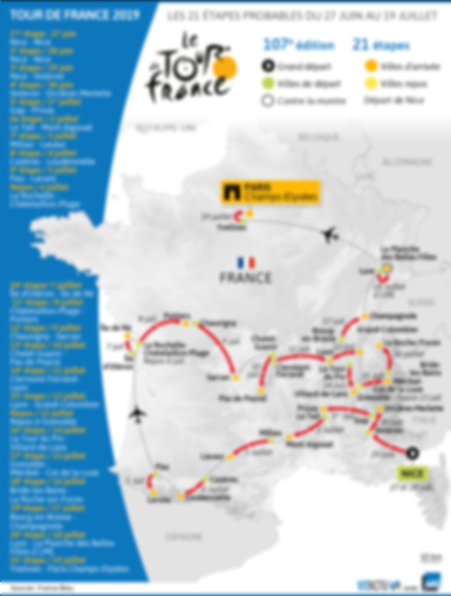 CARTE - Tour de France 2020 : découvrez le parcours probable de la 107e édition - ici