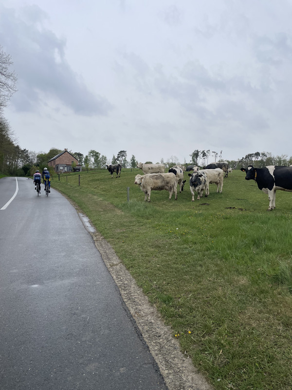 Yesterday I saw a Conti Spanish rider going downhill on the Moskes because he wanted his teammate to take a video. My back wheel was going left and right with every pedal stroke, the rain just felt down and made the cobbles so slippery. Never had that before. Heard the Spanish G-word on the last hard part.