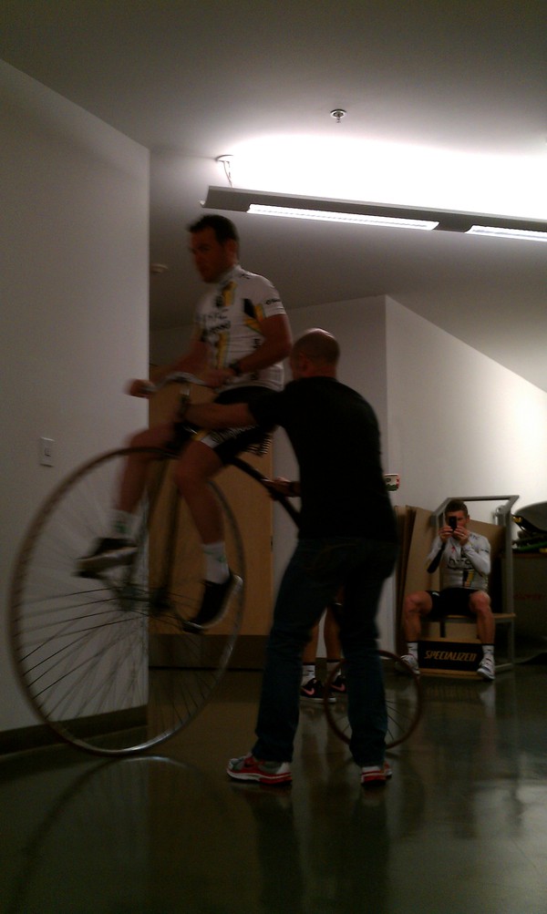 Having accidentaly upset Mark Renshaw by taking the last slice of pizza, Cav remembers what happens to those who get on Renshaws bad side, and immediatally begins testing new equipment to protecting himself in training.