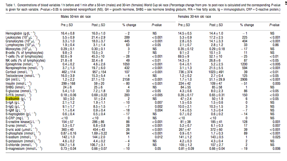 There has been a discussion about norwegians Albumin levels from -98 shown here (https://pbs.twimg.com/media/BGT4SY6CYAAMLiv.png:large). The average values with Albumin was higher than could be expected and that could be proof of norwegians used albumin as plasma expander to hide epo use. I´ve read some studdies and found some things about albumin that i thought intresting. (http://cjasn.asnjournals.org/content/3/1/98.full)