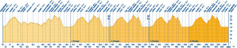 Finally, the professionals will complete the final round seven times - which means 246 kilometres and 4175 metres of altitude difference for them including the journey.
