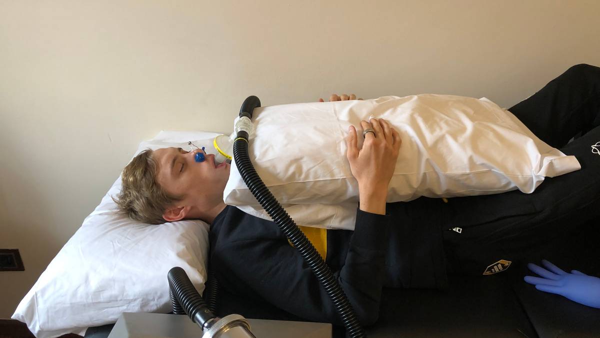 TESTA HØGDEEFFEKTEN: Bent Rønnestad og forskarane på Lillehammer har samarbeidd med Visma-Lease a Bike dei siste åra. Her får Johannes Staune-Mittet den lovlege behandlinga med CO-gass.