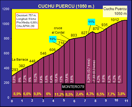much of the distance over 10%. A long circuit featuring the well-known climb of Tenebredo follows. Then there's the new climb of Cuchu Puercu, which is part of the connecting road between the Alto del Cordal and the Alto de la Cobertoria. The side they are climbing is the easiest of the 4 sides that the climb has, I'm afraid, first doing