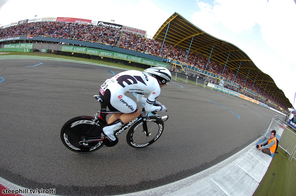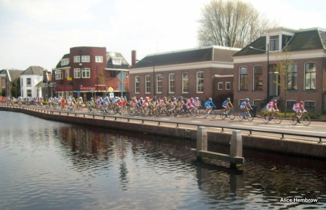 , there is the first climb of the race. This is the VAMberg. This is the main deciding item of the Ronde van Drenthe in both the mens race and the women's world cup. The final prime is at Groloo. After this their are just narrow roads (on the right where the bikes are) until we reach the town centre of Assen. However the race doesn't finish here, or the TT circuit where the vuelta stated in 2009. The race instead finishes by the canal.