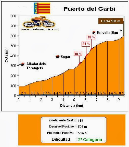 Actually, it's the first of just two consecutive (sort of) seeing as this is now the Sunday stage, so we're going to have a rest day after this, so hopefully that shouldn't tame the racing on Mont Carò. As you say, it's about as good as you can go for a real Unipuerto stage especially in this part of Spain, and especially as this is the Vuelta of comparatively humane gradients; the first of the duelling queen stages being the Trévelez one with the climbs all averaging 6-7% but long, like so many of the real classic climbs. And now we're in for the other queen stage candidate.