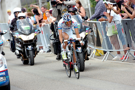 Here's the Cannondale leader and yellow jersey with Moreno Moser.