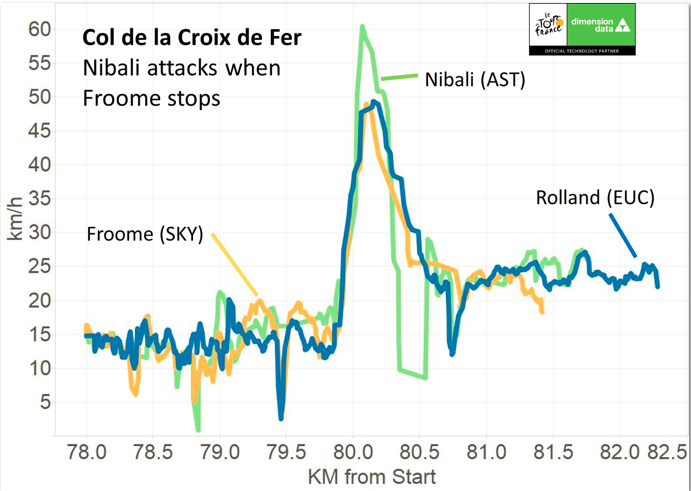Nah video showed Nibali looking back, seeing Froome in trouble and then going.