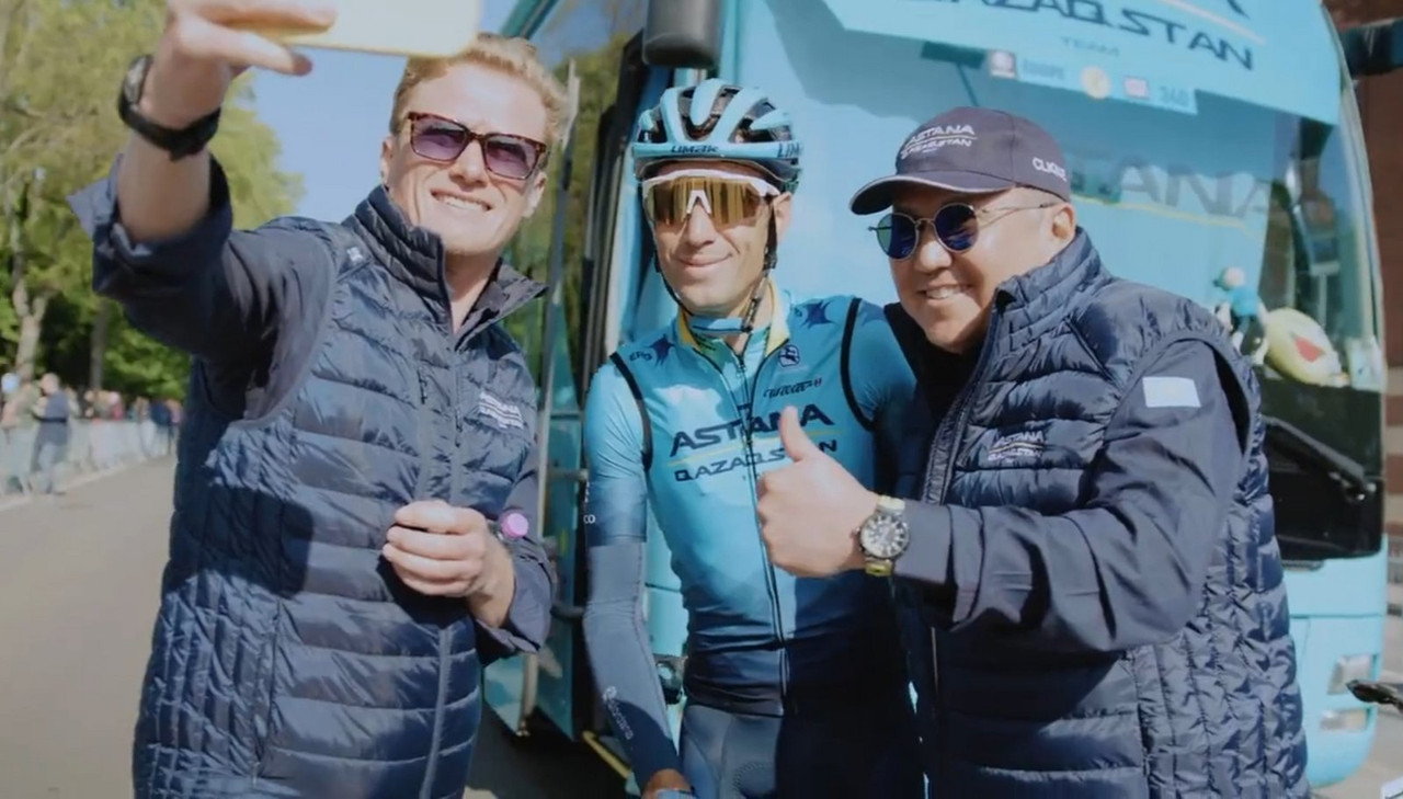 A photo of Nibali wearing a bag