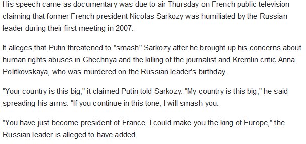 Putin and his thug mentality. i read somewhere this week that at a meeting with Angela Merkel he brought in his monstrous dog. Everyone knew beforehand that Merkel had a fear of dogs. This was also after Merkel had been vocal about human rights abuses. And I see some Japanese politicians this week were also introduced to the dog or maybe it was was a different one. The other one may have earned it's right to a shallow grave ! Maybe it failed to bite Merkel ?